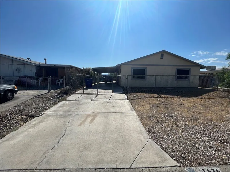 1676 Dean in Holiday Shores in Bullhead City is located few blocks blocks from the waters edge of the Colorado River, offering a easy access for fishing, boating, and a number of water sports for the outdoor enthusiasts. Close to Hancock and Highway 95, you will enjoy having all City Services, and more than half of all of Bullhead's Grocery, Restaurants, and Entertainment are BLOCKS AWAY ONLY !! Beautiful home in a quiet neighborhood, where neighbors are NEIGHBORLY and wave back to you, when driving by! A long driveway leads up to the parking area with easy home entry and makes for easy unloading! Family room is centered with ample size and window size providing natural light when wanted. Large open kitchen with ample cabinet space and storage. Large Bedrooms with closet space and positioned to take advantage of sunrise directions. Recent listing taken off market to upgrade carpet/flooring and interior paint refresh for a modern appeal. Lots of yard to customize and make personal with planting, garden, Pools/Spas and more. Both a Detached garage plus Covered Parking included making RV's, Boats, Trailers, and misc Vehicles. room for All.