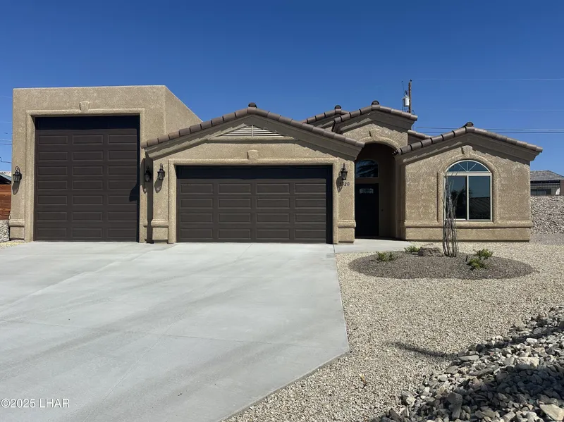 Move in ready!!! Gorgeous brand new custom RV Garage home! Nestled in a quiet cul-de-sac, this beautifully landscaped home has both a private back yard for entertaining and a huge side yard ready for a sparkling pool! This custom home needs to be seen to be believed! Grand entry with nearly 12 ft. ceilings, custom hand-troweled Santa Fe plaster walls, a gorgeous ''Entertainer'' style kitchen w/staggered custom cabinets, stainless appliances and gorgeous upgraded granite throughout. The master bedroom has private access to the backyard and the front bedroom converts to a dual master! Also included, custom tiled bathrooms and flooring, a gorgeous tiled walk-in master shower, hand-cut tile baseboards, 2-tone paint, oil rubbed bronze fixtures, huge walk-in pantry, Low-E windows, 50 amp plug in garage, GORGEOUS EPOXY GARAGE FLOORS and more!!!! Priced to sell! One of the best values in Havasu,...