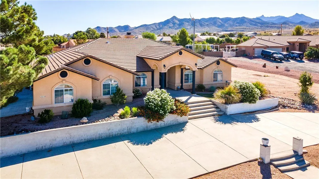 This incredible executive-style home offers breathtaking panoramic views of the Kingman mountain ranges and city lights, situated on 1.43 acres in the highly sought-after Hualapai Foothills subdivision. Boasting 4 bedrooms, 2.5 bathrooms, and 2,551 sq. ft. of living space, this property seamlessly blends elegance and comfort. The beautifully landscaped backyard is designed for entertaining with a relaxing spa, gazebo, and gorgeous views of the city. Inside, you ll find thoughtful upgrades including plantation shutters throughout, dual ovens, a double-sided gas fireplace between the living room and kitchen, and an additional fireplace in the master suite. The home also includes a 20x20 workshop with electric and air conditioning, newer appliances that convey (washer, dryer, and refrigerator), a freshly painted interior, and a spacious 2-car garage. With its luxury features, stunning views...