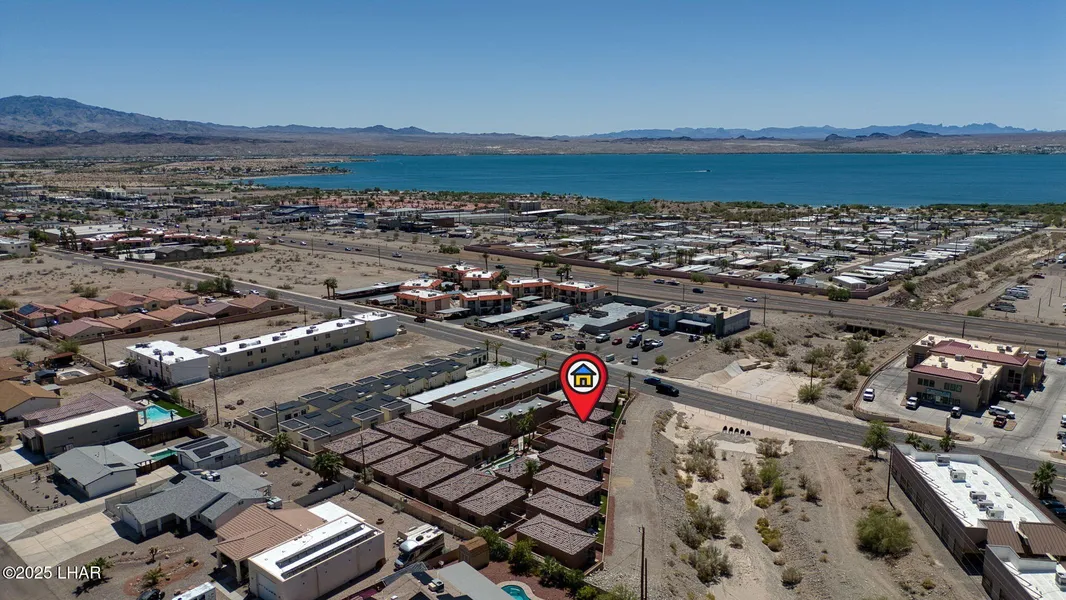 HIGHLY MOTIVATED SELLER-must sell! MAKE AN OFFER--Sunny Havasu Escape with Panoramic Lake Views! Discover your slice of paradise in this stand-alone condo that feels more like a private home. Offering 612 sq. ft. of stylish, near-new living space, this home showcases stunning, unblockable views of Lake Havasu. Beautifully appointed with granite countertops, stainless appliances, vinyl plank flooring, and inside laundry, it blends comfort and function seamlessly. The bathroom features a tiled step-in shower, and dual mini-splits keep each area perfectly cooled or heated. With two patios to enjoy sunrise and sunset, this 'tiny home' is a low-maintenance escape that's perfect for weekend getaways, seasonal stays, or year-round living. And let's not forget the detached dedicated garage just steps away from the unit, along with the community amenities including a heated pool and spa, BBQ spac...