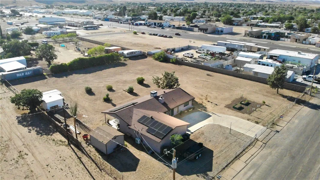 This 3 bedroom 3 bath home on an acre is zoned agricultural with plenty of space for horses, toys or the garage of your dreams. Acre is fenced with RV and human gates. Producing Peach-Pear and Pomegranate fruit trees and a your own Joshua Tree. Home has a standard living room with fireplace plus a huge recreation room with casual dining. Spacious bedrooms with plenty of closet space. Freshly painted interior. Many extras like new PEX water lines through out, new vinyl flooring, some new windows and a tank-less water heater. Choose electric or gas for your stove or dryer with dual hook ups. Even a gas hook up on covered back patio for BBQ. Two car garage has shelving, heating and cooling with a 1/2 bathroom just inside the human door to home. Two storage buildings in back yard. Seller installed a complete solar system about a year ago, seller will pay it off during escrow.
