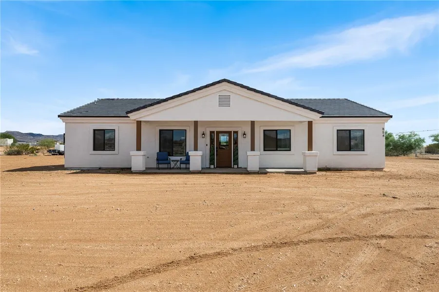 BETTER THAN NEW!! Check out this beautiful and modern Golden Valley home situated on ONE full acre! Featuring a 3-car boat-deep garage, this property offers an open and inviting floor plan with stylish upgrades throughout! Enjoy designer lighting, upgraded flooring, floating shelves, and more all thoughtfully designed to create a modern, move-in ready space. For added convenience, the north side of the home is equipped with RV electric, water, and dump hook-ups. Bonus: leased solar is already in place for energy efficiency! The spacious living room features a custom built-in entertainment wall with electric fireplace and abundant natural light! The gourmet kitchen is designed for entertaining with a large island, stainless steel appliances, quartz countertops, modern backsplash, Huge walk pantry, Indoor laundry area with extra storage space. This home offers comfort and privacy with two generously sized primary suites, each featuring its own bathroom. Ideal for multi-generational living, hosting guests, or anyone who desires added space and independence. The split floorplan places each suite on opposite sides of the home, providing maximum privacy and a thoughtful layout. Don t miss the chance to own this stylish Golden Valley home close to Kingman, Laughlin, and surrounding desert recreation