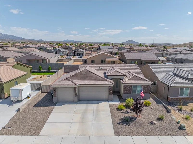 Like-New 3 bed 2 bath with a 3 car garage and RV parking in one of Kingman's most desirable neighborhoods! Enjoy comfortable living in this well-maintained single-story home that still feels fresh and new. Located in a peaceful neighborhood, it offers 3 bedrooms, 2 bathrooms, a fully landscaped front and backyard, and a spacious 3-car garage with RV parking perfect for extra storage or recreational vehicles. Inside, the open-concept design creates a bright, welcoming atmosphere. The living area flows seamlessly into the dining and kitchen spaces, where you ll find quality finishes, abundant cabinetry, and plenty of counter space. The primary suite features a walk-in closet with custom built-ins and an en-suite bathroom complete with double sinks and a generous shower. Two additional bedrooms offer comfortable, light-filled spaces ideal for guests, family, or a home office.