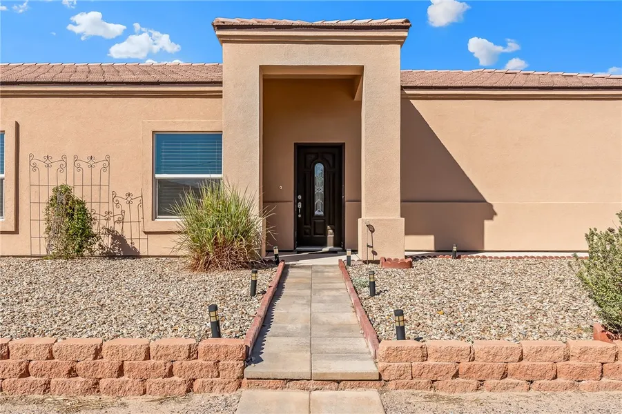 Centrally located in the desirable Rio Lomas community, this beautiful home, built in 2019, offers 1,690 sq ft of well-designed living space featuring 3 bedrooms and 2 bathrooms. Situated on a corner lot with full fencing, the property includes RV parking and an oversized garage measuring 25 feet wide by 33 feet deep, complete with 9-foot doors ideal for all your desert and river recreational items. Inside, you'll appreciate the open and airy layout with staggered large-plank flooring throughout. The spacious great room seamlessly flows into the dining area and gourmet kitchen, which boasts rich toffee-hickory raised picture-frame cabinets, granite countertops, a walk-in pantry, a gas range, a refrigerator, and a sleek stainless-steel and black appliance package. The primary suite serves as a private retreat, featuring mirrored wardrobe doors, dual sinks with quartz countertops, and an impressive walk-in shower. Two additional bedrooms and a full guest bathroom provide ample space for family and visitors. The interior laundry room is equipped with white Euro cabinets and a convenient sink. Beyond the home, the location is unbeatable just minutes away from the Mohave Crossroads Shopping Center (which includes Target, Kohl s, Ross, Boot Barn, PetSmart, and more) and less than 2 miles from the Colorado River Nature Center, a 500-acre preserve offering fishing, hiking, picnicking, and access to the cool, clear waters of the Colorado River. This property combines comfort, functionality, and an excellent location truly a gem in Bullhead City!
