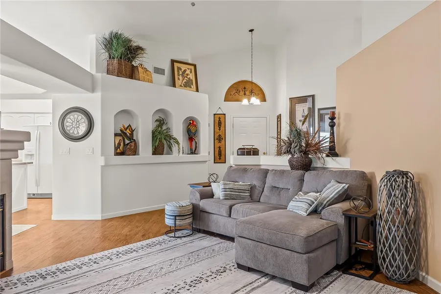 Welcome to the desirable Fox Creek Community of Fox Ridge, a master-planned, non-age-restricted neighborhood that offers charm, comfort, and convenience. This 1,557 sq. ft. home features 3 bedrooms and 2 baths, built in 1997 with thoughtful updates throughout. Step inside through a welcoming foyer that leads to a great room adorned with Prego luxury laminate flooring and a two-sided gas fireplace perfect for cozy evenings. The updated kitchen showcases white cabinetry, modern appliances, a stainless-steel sink, a gas range, and beautiful butcher block countertops. It seamlessly flows into a window-lined dining room that fills the space with natural light. The spacious primary suite offers his-and-her closets, a jetted Jacuzzi brand tub, and a separate shower for ultimate relaxation. Enjoy year-round comfort in the finished, air-conditioned garage, which includes an exhaust fan, a 220 outlet, and a workbench ideal for projects or hobbies. Step outside to your fully landscaped and fenced yard, featuring two storage sheds and a rare find: an enclosed patio complete with a swim spa and barn doors that open to let in the fresh desert air. This home is ready for immediate occupancy all reasonable offers will be considered!