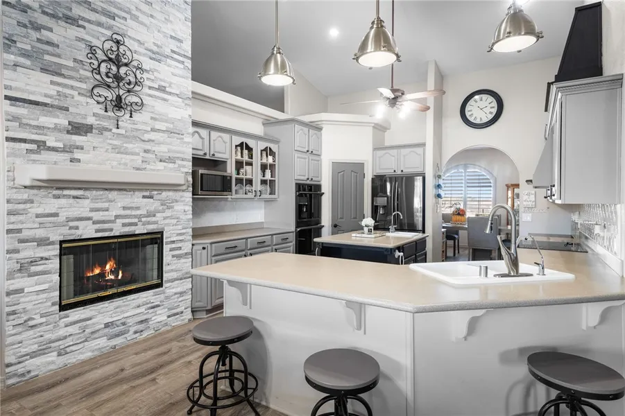This incredible executive-style home offers breathtaking panoramic views of the Kingman mountain ranges and city lights, situated on 1.43 acres in the highly sought-after Hualapai Foothills subdivision. Boasting 4 bedrooms, 2.5 bathrooms, and 2,551 sq. ft. of living space, this property seamlessly blends elegance and comfort. The beautifully landscaped backyard is designed for entertaining with a relaxing spa, gazebo, and gorgeous views of the city. Inside, you ll find thoughtful upgrades including plantation shutters throughout, dual ovens, a double-sided gas fireplace between the living room and kitchen, and an additional fireplace in the master suite. The home also includes a 20x20 workshop with electric and air conditioning, newer appliances that convey (washer, dryer, and refrigerator), a freshly painted interior, and a spacious 2-car garage. With its luxury features, stunning views, and move-in ready condition, this property is truly a rare find in Kingman.