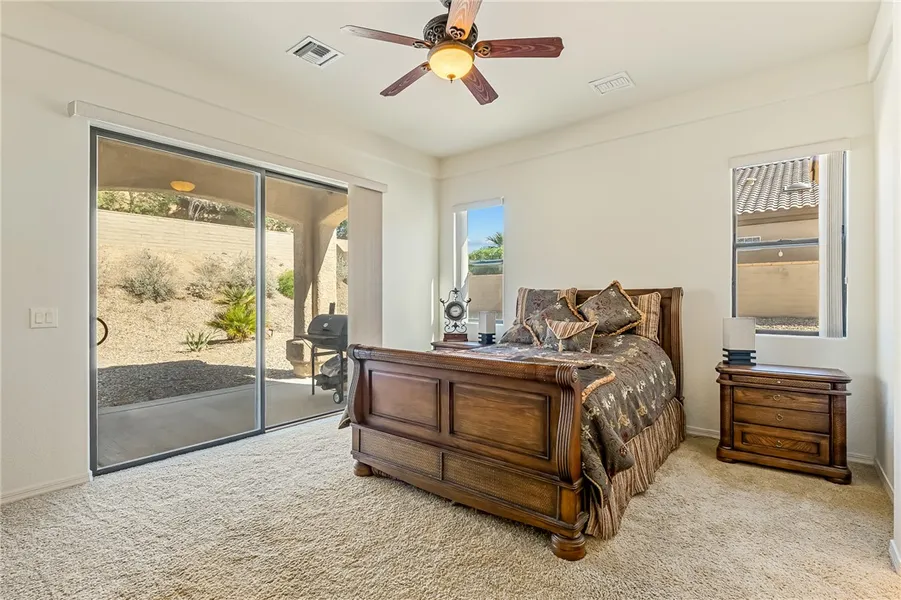 Pride of ownership shows in this pristine home that has it all. Tastefully decorated turn key home is ready to move right in. Includes furnishings, appliances, decor and even two wave runners in the garage. Ten foot tall ceilings and three sliding doors to enjoy your covered back patio from anywhere in this home. Gorgeous plantation shutters and crown moulding throughout the home. Cozy neutral colors. Open floor plan with large rooms in this 1994 sq ft split floor plan on a quarter acre lot! Plenty of space in kitchen with ample tall cabinetry, kitchen island/bar combo, tile counters and floors. Magnificent dining area. Spacious, split bedroom layout. Living room has plenty of hang out space and carpet. Primary bedroom with private bathroom has separate shower, bathtub and walk in closet. Second bedroom feels like another primary. Third bedroom has a flexible design and could be used for whatever you wish. What a spacious garage! Boat deep, insulated with one double door and one single door. Well maintained - new AC and condenser July 2021, irrigation lines updated to PVC September 2023, new irrigation timer 2024 and new water pressure vales and irrigation valves September 2025. Double gate for potential RV parking. Private block wall around home and room for a pool in the backyard. Home has water softener and RO. Single owner residence was used as second home in this gated community of Talon Pointe. Near airport, golf, casinos, shopping and more.