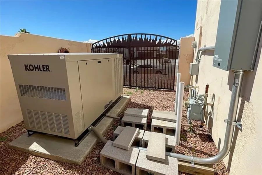 NOW THIS IS CUSTOM! Step into 2,311 square feet of true Southwest charm warm, welcoming, and full of character. This solidly built 3-bedroom, 2-bath home is designed for tranquil, year round living starting right at the inviting courtyard entrance. Inside? It s a one-of-a-kind experience. Tongue and groove wood ceilings throughout. Massive wood beams. Arches. Niches. Stained glass touches from doors to wall art and transoms. Artisan tilework. A cozy electric Kiva fireplace. The great room flows beautifully to the backyard, perfect for indoor-outdoor living. The split floor plan offers flexibility for multigenerational living, snowbirds, or full-time residents hosting family and friends. The spacious, serene primary suite includes a secret hideaway room (s) ideal for an office, hobby space, gym, or whatever your heart desires. Need more? There s a bonus room (not included in square footage!) currently used as a stained glass studio that connects the home to the garage. Think art studio, workshop, storage, or even restoring your dream car. The kitchen? Bright and open with courtyard views, perfect for prepping your famous guacamole. Includes updated appliances, countertops, water softener, R/O system, and water heater. You ll also find solar screens, a massive finished garage with 50 amp service, and space galore bring the golf cart, boat, off-road toys, or collector cars. And don t miss the 30kw Kohler generator with automatic transfer switch a rare and valuable whole house upgrade for comfort and peace of mind. Located in Desert Lake Estates. Proudly maintained and thoughtfully upgraded. MOVE-IN READY. COME SEE WHY!