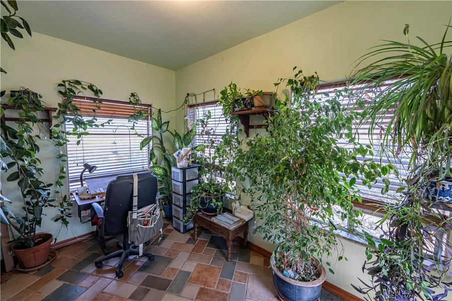Discover a truly unique property with breathtaking views that sits on 6.36 acres. This home is a dedicated Passive Solar Structure focusing on large windows facing East and Southeast allowing maximum sunlight to enter and heat the floors. The sunroom, with its plants, is the apex of the design with the great room flowing Northeast and the hall leading Southwest to the guest bath and bedrooms. Master bedroom suite receives extended hours of sun exposure warming the area and reducing mini-split use during fall and winter months. This versatile 2-bed, 2-bath home (with electric bidet in the hall bath) includes an additional sitting room that could easily be converted into a third bedroom. Inside, you'll find beautiful wood flooring throughout most of the home, complemented by tile in select areas. The spacious kitchen opens to a large great room. Climate control is well thought out with Electric mini-splits for heating and cooling that are installed in the great room and bedrooms. Both bathrooms have electric wall heaters. Back up cooling is available with a ground level industrial size evaporative cooler ducted throughout the home. The great room has a propane heater set on raised tile. The primary suite offers ample space with a large 15x6 walk-in closet, an en suite bath with dual sinks, a walk-in shower, separate tub and a water closet. Entrance into the 2 car garage is through the laundry room which has storage, standing sink, washer, dyer and freezer. Grey water from washing machine is used to water trees and plants. For those interested in solar panel installation there is solar wiring ready for set up in the garage. Outside, enjoy sustainable living with two large water holding tanks (1,000 and 2,000 gallons), three smaller tanks with rainwater collection and irrigation, and a variety of fruit trees in the fenced backyard. A slate walkway leads to a welcoming front porch. A metal roof allows for low maintenance and longevity. Also included is a 1,200 sq ft drive through style barn with corrals, a tack shed, and hay storage. Both corrals have raised cement pads for feeding. Electricity and water are available at the barn. A large arena is attached to the corrals. The adjacent 6 acre lot is also listed for sale giving buyers the rare chance to own 12 acres of usable land. This one-of-a-kind property combines charm, function, and unforgettable views.
