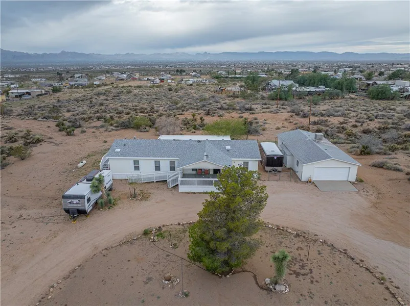 This lovingly cared-for 2002 doublewide manufactured home sits on 2.35 acres and is being offered by its original owner. With 1,769 sq. ft., 4 bedrooms, and 2 bathrooms, the home offers a comfortable, well-designed layout that has been thoughtfully maintained over the years. Need a home that comes with appliances? This one comes fully equipped with the washer, dryer, refrigerator AND 2 refrigerators and chest freezer in the garage Enjoy Arizona sunsets from the fully permitted wrap-around decks, perfect for morning coffee or unwinding at the end of the day. Inside, the kitchen features a double oven and ample space for everyday living or entertaining. The property also includes a large detached 25 x 60 garage, with a roll up door and a man door, ideal for a workshop, storage, or recreational vehicles. A pre-listing inspection has already been completed to support full disclosure and help ensure a smooth, transparent transaction for the next owner. With wide-open space, pride of ownership throughout, and a competitive price point, this property is ready to welcome its next chapter.