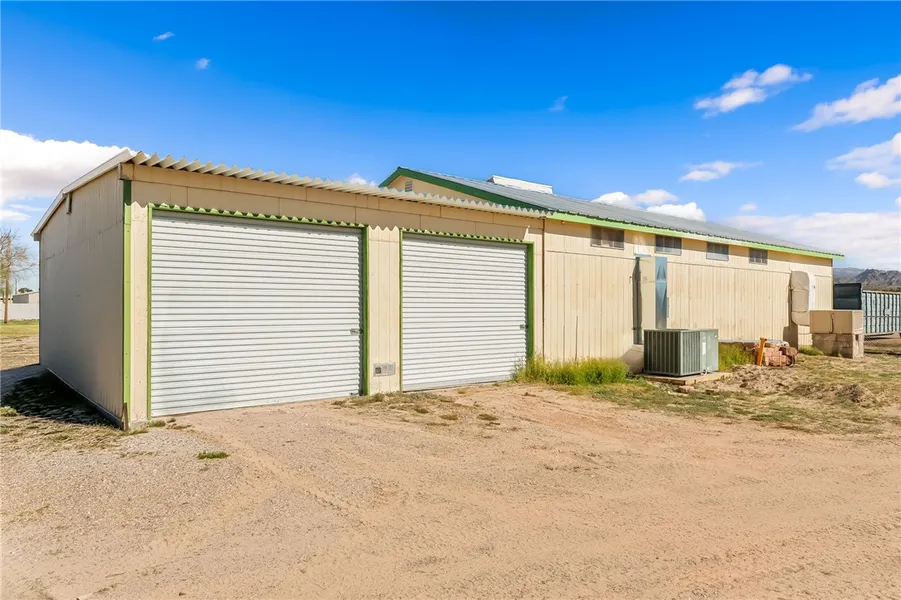 UNIQUE HOME IN FORT MOHAVE! You won't feel like you live in the desert with this ranch-style home on 2.34 acres, complete with backyard grass & trees! NEW exterior paint! Home features 3 bedrooms + 2 bonus rooms (possible 4th bedroom)+ 2 bathrooms, ~1800 living sq ft total including the addition. Spacious galley kitchen with large pantry & refrigerator included! Home offers both casual AND formal dining spaces. The main living room is in the front of the home & the 2nd living room area in back features authentic barn wood. Most of the interior has been remodeled including updated bathrooms, fixtures, paint, & LVP flooring. Detached 3-car garage with 220-power is to the north of the home (air conditioned with laundry area and added storage). Washer and dryer included. Detached ~1500 sq ft shop with its own bathroom to the south of the home (also partially air conditioned as the shop has 2 sections). If you love porches, you have a fantastic brick porch on the front of the home for sipping coffee watching the sunrises and another porch off your primary suite to the south (new outdoor carpet being installed). New main septic system installed in 2020. This home comes with a new deluxe Generac system installed in 2025 (paid off at close of escrow, valued at ~$20k). If the power goes out, you will be up and running again in seconds. Leased dual propane tanks present on property currently. Property has its own PRIVATE WELL. Large wood RV cover on far south side, with a second septic already installed (you can build another structure if you wish). Agricultural-Residential zoning here, so bring the horses, goats and chickens! Fully fenced backyard with extra concrete poured in front & on north side of garage. No HOA here and just a small bit of dirt road to travel on to the front driveway. Large trees and a tree swing in the backyard... covered back patio with excellent mountain and sunset views. Property's southern edge contains a Tri-State Wifi tower with a transferable agreement for covered Internet service & 1 power circuit on the newer panel. Air conditioner has been serviced/maintained yearly. There is a covered breeze-way between the home and the garage, which includes a CATIO (keep the litter boxes out of the house!) This home truly has great character and an even better location. Home was just professionally cleaned. Grass has sprinklers. Owner/Agent