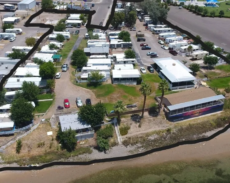 Where can you find property like This 2.87 +/- acre property along the Colorado River in Bullhead City, Arizona, offers a unique chance to own over 400 feet of riverfront right across from Harrah's Casino in Laughlin, Nevada. Nestled next to the Bullhead City Community Park, with its launch area, splash park, and calm water depths in a no-wake zone, this location is perfect for a peaceful beach getaway. Imagine transforming this space into a tiny home community, a family estate compound, a modern RV park, or a mobile home park. Large riverfront properties like this are rare, especially with the growing demand from new residents drawn to Arizona's mild winters and summer water activities. Currently functioning as an RV/mobile park with one vacant lot, this property holds incredible potential. Don't let this remarkable opportunity slip away! the possibility of developing a parcel for your own use and selling off the reminder is there.,
