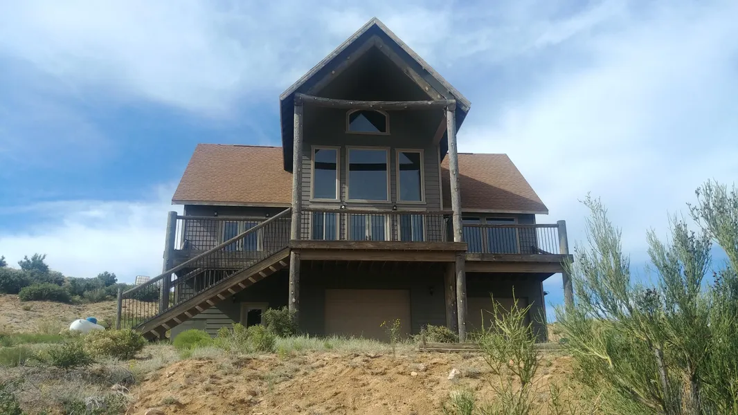 16765 E Bogles Ranch Road. Magnificent Views from this lovely two story home with basement, on 36 with Acres!! Generous picture windows allow stunning views of the breathtaking panorama by day, and the amazing stars by night. 505 ft of deck allow you to get an even better look. Inside the home, real wood floors grace the kitchen, dining area, and living room. A stone fireplace warms the living areas in cold weather, with your choice of wood burning, or propane flame. The Master Suite is also on this main level, with carpeting, walk-in closet, dual sinks, and a patio door to the deck. A 3/4 bathroom is also on this level. Upstairs, are 2 more bedrooms and another full bath; with a loft eye's view down into the living room, and out the generous windows. All bedrooms are carpeted, and all bathrooms have travertine tile. In the basement, you find a 4th bedroom with its own entrance, a utility room, extra storage, and the spacious garage with two separate doors. This home is powered by Generator and Propane. The refrigerator itself is propane powered.