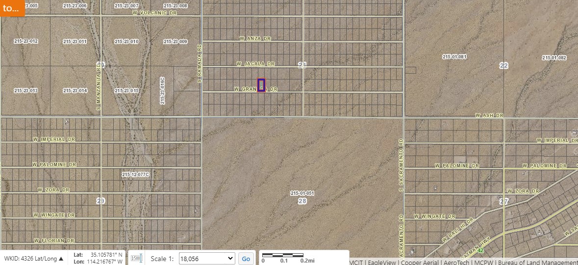 Coordinates: Nw Corner: 35.100738 N , 114.205588 W NE Corner: 35.100738 N , 114.205035 W SW Corner: 35.099918 N , 114.205588 W (Road) SE Corner: 35.099918 N , 114.205035 W (Road)
