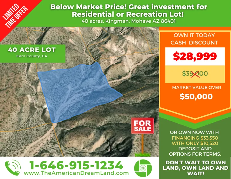 This 40-acre lot is located in Kingman, Mohave CA. Perfect for making a long-term investment or building your dream home!