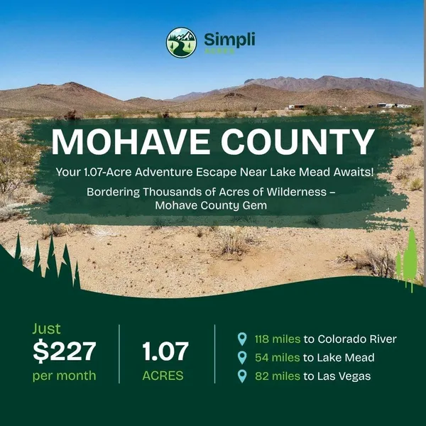 Message us to get full details, photos, and drone footage! This 1.07-acre parcel in Mohave County, Arizona is the perfect basecamp for your off-grid adventures. Nestled just 54 miles from the stunning shores of Lake Mead and the legendary Colorado River, this land gives you year-round access to some of the Southwest's best outdoor playgrounds.