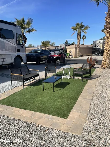 RV Resort for RVs of 25'+ of living space, 10 years or newer welcome. Nice lot w/concrete pads for parking your RV & gravel area for parking your toys. Lot faces north & is beautifully kept w/pavers & lovely green turf area for your outdoor enjoyment. Lot is on the south wall & close to the Club House, pool, laundry & many activities. All in a gated resort w/deeded lots, paved street & street lights. Beautiful resort hosts a clubhouse, activity center, 2 pools, 2 spas, fitness center, 2 laundry facilities, 9 holes of putt-putt & putting green, bocce ball, horseshoes, pickleball, pool table, poker tables, card games of all types & sorts, arts & crafts of various kinds, i. e. quilting, painting, beading, golf, razor riding groups, pistol shooting group, corn hole, dance & exercise groups & several own boats as boating is near by. Dances weekly w/happy hour. Entertainment by Razor's Edge, t...