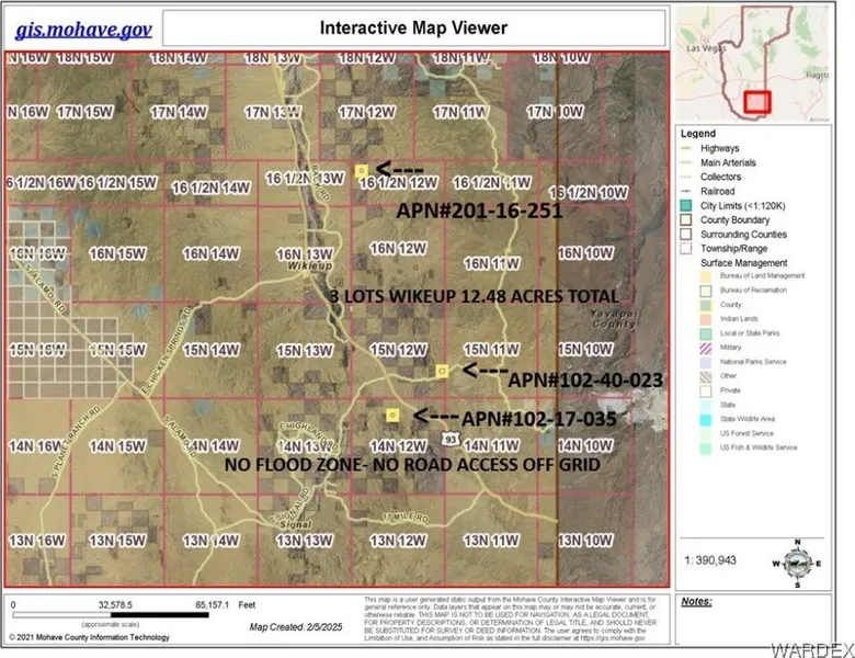 12.48 ACRES IN WIKIEUP ARIZONA! 3 Lots total (10-acres)(1.23-acres)(1.25-acres) Ready for new ownership!! No flood zone, no HOA restrictions and low yearly taxes to own all together. Apn #102-17-035, Apn#102-40-023 and Apn#201-16-251 all convey. Zoned agricultural/residential and a considerable distance from any neighbors or businesses. Camper's paradise if your craving remoteness. These properties have it all for any nature enthusiast. This can be your new off grid hideaway from the city hustle. Breathtaking views, mild weather all around, secluded and private. 4WD & caution recommended when driving out to these properties, no legal county roads cutting through. Properties lack legal access. Many possibilities with owning vacant land, invest in this lifestyle.
