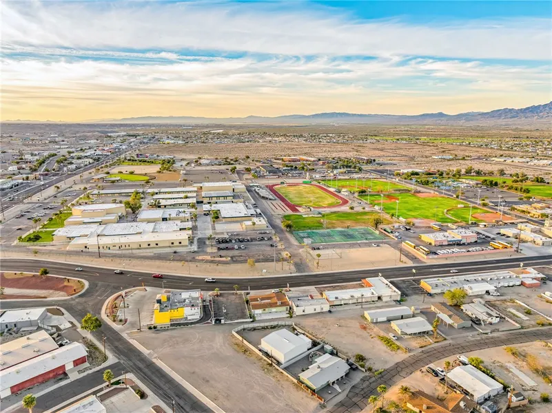 Incredible investment opportunity right in the heart of Bullhead. This iconic building currently houses a national tenant for 17+ years (Little Caesar's) as well as a local favorite restaurant (The Sushi Spot). One unit (Little Caesar's) also includes a drive-through window. Tenants share the restroom in 500 sq of common area. Ample parking available on both east & west sides of the building on a large 28,750 sq ft corner lot. Located on Hancock Road and visible from one of Highway 95's busiest intersections, this location is extremely desirable. This is a single-story building- upper areas were designed for advertising purposes.