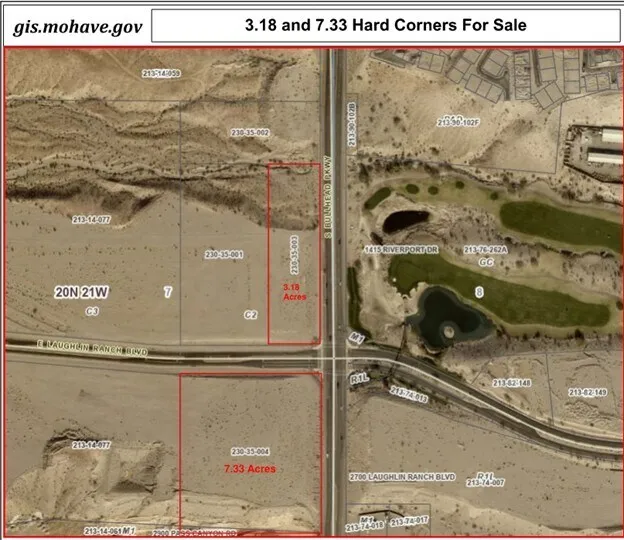 Prime hard corner site on Bullhead Parkway! This 7.33-acre parcel at the busy intersection of Bullhead Parkway and Laughlin Ranch Blvd offers incredible visibility and potential utilities extending to the edge of the property.