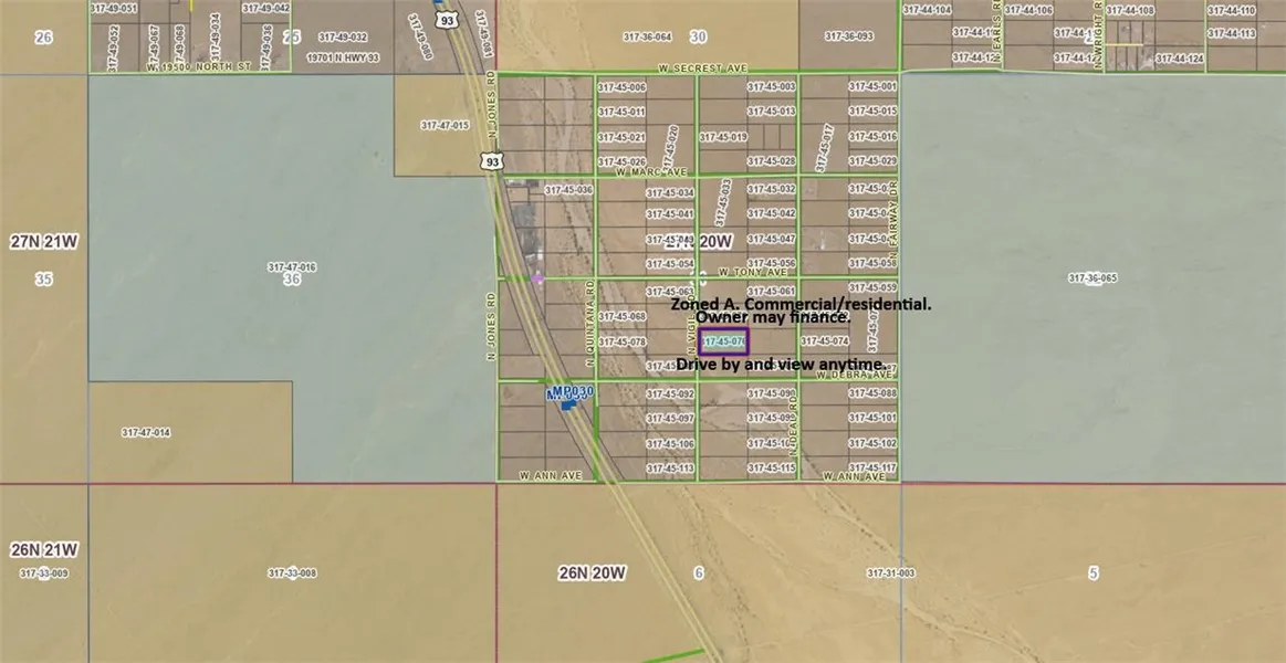 Great opportunity to own this property zoned commercial/residential. It is close to Hwy 93. No timeframe for use. No hoa fees. Start you own business and live on the property. Not far from Las Vegas. Lake Mead Temple bar is close for boating, fishing and swimming. May be a good spot of an open storage. Please inquire with Mohave County planning and zoning for uses of this property for a business. Owner may finance with 15k down at 8% up to 5 years. Drive by and view anytime. Owner/broker.