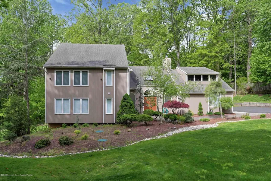 Welcome to this beautifully appointed Contemporary home located at the end of a cul-de-sac situated on 1.11 acres. This well maintained & updated home boasts of a 2 story foyer w/skylight & double entry door. Updated kitchen w/maple cabinets, granite counters, SS appls & sliding door leading to deck. Oversized 2 story LR w/a wall of windows. FR w/skylight, custom marble frpl & high ceiling. All newer interior doors & hardware. Hdwd floors thru-out! All 4 bathrooms completely renovated w/high end Porcelanosa surface, fixtures & tiles. MB offers a Jacuzzi & lg shower w/seamless glass doors. Master Bdrm 1st Level. 4 bdrms 2 level. Open balcony & landing. Huge w/o finished bsmt w/10' ceilings. Septic system 2015/Tank 2018. 1 A/C 2016. Alarm & camera system.Top Rated School System!
