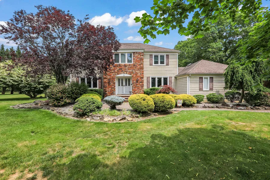This charming 4 bedroom Center Hall Colonial is set on a pristine corner lot which boasts over an acre of property and beautiful mature landscaping. This home offers a traditional layout ideal for comfortable living and entertaining. The newly painted first floor offers a living room and dining room with hardwood floors and crown molding. The eat in kitchen features a center island complete with new butcher block countertop and sweeping views of the most spectacular backyard. The family room enjoys a newly converted gas fireplace and sliding doors that open to your backyard oasis. A large patio complete with an inviting gazebo and Sylvan pool/spa make the perfect setting for a relaxing afternoon. The fully finished basement features a half bath and built-in bar which further expand your living space. Conveniently located near NYC transportation, PNC Arts Center, and the beautiful parks and beaches of the Jersey Shore. A MUST SEE!