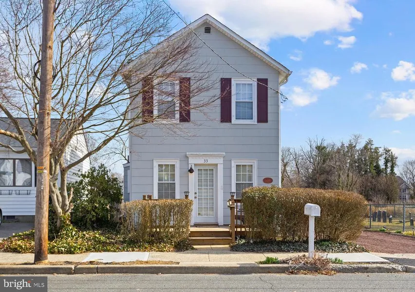 Welcome to the Borough of Allentown! Located one block from Main Street, this 3 bedroom, 1.5 bath Colonial home embraces beautiful natural light throughout, restored wide plank pine flooring and a wood burning stove for the cozy winter nights. The updated kitchen has beadboard molding, 42-inch cherry cabinets, a double sink, stainless steel appliances, and plenty of counter and cabinet space, making entertaining and everyday living seamless. Check out the exquisite built-in china cabinet in the kitchen and the French door that leads to the backyard of beautiful flowering trees and raised flower beds backing to open space. Upstairs, you will find the primary bedroom that features two closets, wood floors, and beautiful views of the open space outside. The two additional rooms are great for bedrooms or home office(s). Plenty of storage throughout with pull down attic steps, basement with walkout stairs and a shed. Other features include a Timberline roof, fully fenced yard, replacement windows, dual zone heating and air, individual thermostats in the master bedroom and nursery, and central air. Convenient commute to all major roadways for travel in any direction. Visit Allentown today, and stop by this great little home!