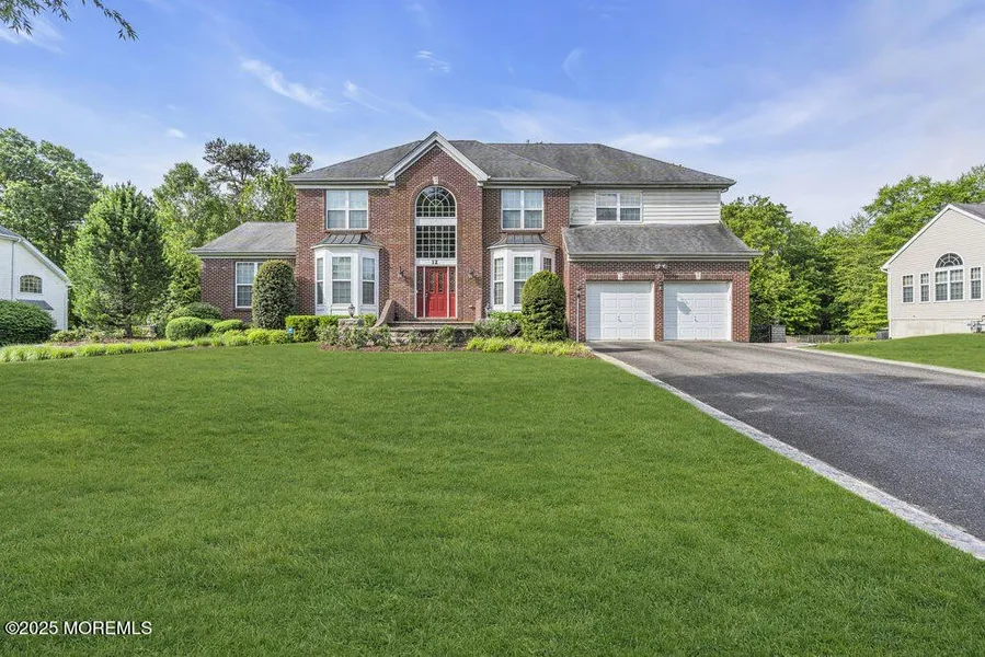 Back on the Market! Located in desirable Manalapan Estates, this stunning brick-front home features 4 bedrooms, 3.5 baths, and a finished basement with a full bath, built-in bar with sink and fridge, theater area, and gym. The oversized .6 acre property backs to protected woods with privacy landscaping and a fenced yard. Enjoy the expansive paver patio with built-in outdoor kitchen-perfect for entertaining. Inside boasts a 2-story family room with gas fireplace, first-floor office, and a sunlit bonus breakfast room. The kitchen offers 42'' cabinets, granite counters, center island and a serving station with extra cabinetry. Beautiful landscaping and an expanded front paver entry complete the picture of luxury and ambiance!
