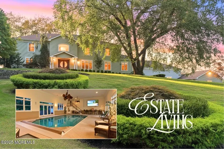 Imagine living in a home where every day feels like a resort getaway. Set on sweeping lawns with mature trees, this Holmdel estate blends elegance with comfort. The chef's kitchen flows into sunlit gathering rooms, perfect for Sunday dinners or holiday celebrations. A year-round indoor pool and spa retreat invite relaxation, while the game and bar room set the stage for laughter and unforgettable nights. Upstairs, the primary suite is a sanctuary with spa bath, multiple walk-in closets, and tranquil views. Additional bedrooms and flex spaces offer room to grow, work, or host. Outdoors, landscaped lawns and patios create the perfect backdrop for summer entertaining under the stars. A rare chance to own not just a home - but a lifestyle of luxury and legacy