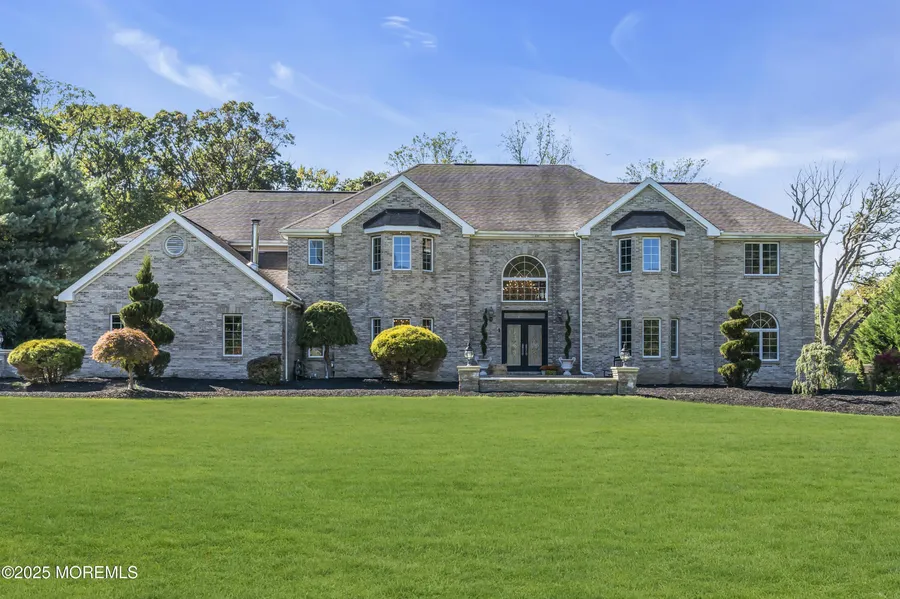 Here is your opportunity to own a magnificent 4,768 Sq. Ft., 6 BR, 4 full bath colonial w/ in-ground concrete pool in the highly sought after Windwood Development. Situated on 3.27 acres, this magnificent estate features brick front exterior, two story entrance, conservatory, Upgraded kitchen with brand new marble like tile . Center Island breakfast bar, double oven, and sub zero refrigerator. Eat in area leads to your spectacular private yard. Two story great room w/ fireplace. Upstairs, you have five bedrooms, including primary suite w/ three sided fireplace, sitting area, huge walk In closet with organizers and private en-suite with soaking tub. Main level has one bedroom with private bath, Finished basement, and 3 car garage makes this the perfect choice for you! Located close to all major roads, shopping, highways, restaurants, commuting and the Jersey Shore.
