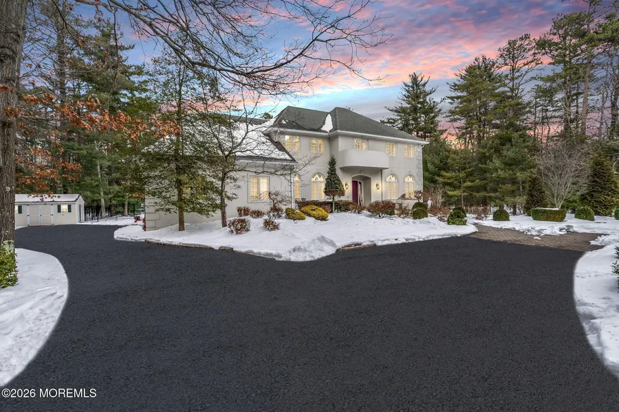 Welcome to this stunning Colonial tucked away at the end of a private cul-de-sac in prestigious Colts Neck. A picturesque U-shaped driveway, charming koi pond with waterfall, and manicured landscaping create a breathtaking first impression. Inside find a grand two-story foyer accented by architectural archways and hardwood floors that flow throughout the home. The formal dining room showcases decorative crown molding & two sets of double windows, while the elegant living room - also framed by double windows - seamlessly opens to the spacious family room featuring a lovely fireplace and abundant natural light. The gourmet eat-in kitchen is designed for both everyday living and entertaining, offering rich wood cabinetry, granite countertops, a double oven, large center island, & an expansive breakfast area with sliding doors leading to the oversized deck. The main level also features a fir...