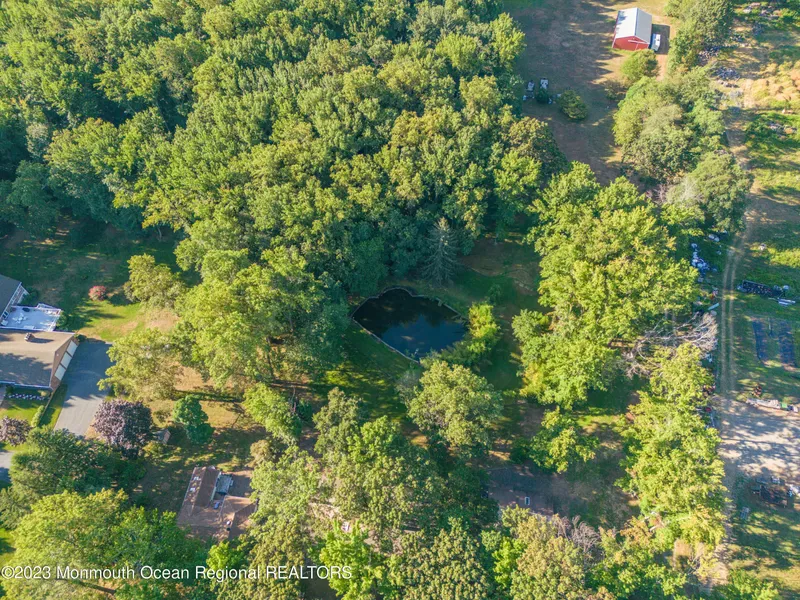 Property is a 4.22 acre building lot with a pond, house, and two huge garages, located in prestigious Lincroft, across from a multiple million dollar new home development. What makes this a great opportunity, is the following: Allows a newly constructed home between 3,000 to over 10,000 square ft. The huge garages can easily be made as a barn, office, storage space, stalls for horses, antique car storage and more. The existing home can be used for most of the above. You might want to add on to the home and not build a new home. There are so many ways this property can be used. You are not just buying a building lot, you are buying an investment. Once you own this lot you could go for a variance and get multi lots.