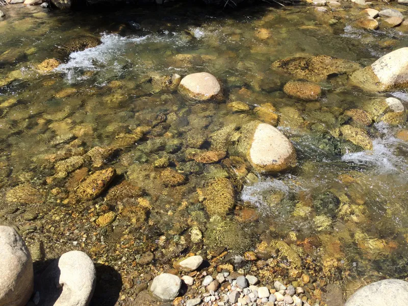 is water to pan, you are on a river! There is excellent rock formations with run off.