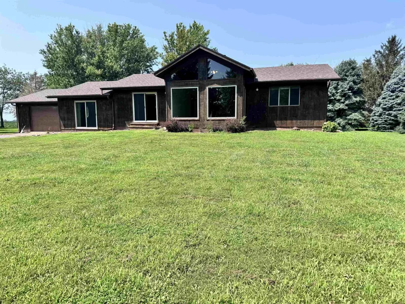 Check out this charming 3.3-acre property with a beautiful ranch home and barn!! Imagine watching sunsets from the gorgeous back patio with amazing views of farmland all around you. This ranch home has 3 bedrooms and 3 bathrooms. The main livingroom has vaulted shiplap ceilings with a gorgeous central brick fireplace. The view from the large picture windows in the livingroom is spectacular. The kitchen has the cutest navy cabinets, a large pantry, and a great view of the backyard from the window over the kitchen sink. Another livingroom is off the kitchen and is a great drop zone area off the 2-car attached garage. The basement has a finished kitchen area as well, with a flat top stove, microwave, dishwasher, and beautiful cabinetry. There is also a finished bathroom in the basement with a clean shower surround, double sink vanity, and tiled floor. Updates to the house include a NEW roof in 2024 and a NEW furnace & A/C in 2024. There is also a tree stand on the property by the red barn. The beautiful established trees, gorgeous landscaping, and privacy of this acreage is a must see!