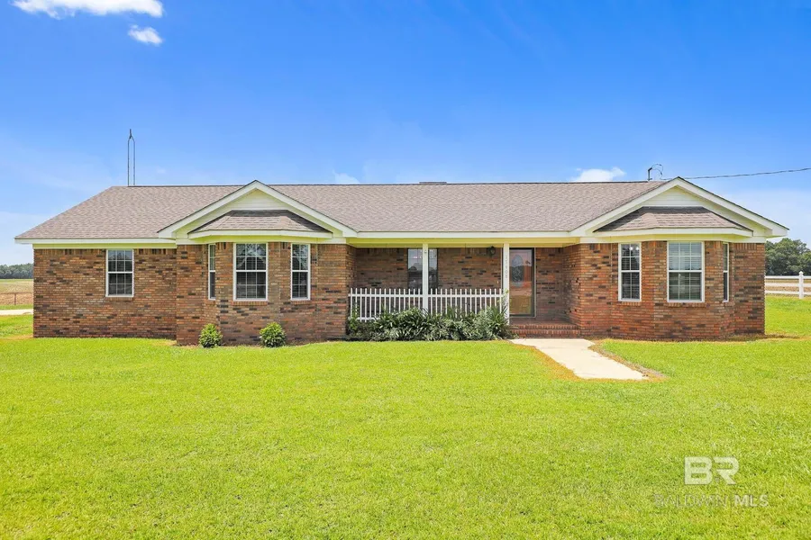 Enjoy peaceful rural living in this beautiful 3-bedroom, 2.5-bathroom home situated on a spacious 1-acre lot! The living room boasts a vaulted ceiling and a cozy wood-burning fireplace, creating a warm and inviting atmosphere. The large primary suite offers privacy, while two secondary bedrooms share a convenient Jack and Jill bathroom. The kitchen features granite countertops, ample cabinet space, and direct access to the formal dining room—ideal for both everyday meals and entertainment. A large laundry room and a half bath are conveniently located in the hallway. Outside, you'll find a shop for hobbies or storage, a covered carport, and a charming white vinyl ranch fence framing the property. Recent updates include a new roof in 2022 and a replaced HVAC system in 2023. This property is in the J. U. Blacksher School District and is conveniently located just 1 mile outside of town and 13 miles from I-65 and Wind Creek Casino, providing easy access to amenities and entertainment. Don’t miss out on this unique opportunity—schedule a showing today! Property sold as is. All information is deemed reliable but not guaranteed. Buyer to verify all information during due diligence.