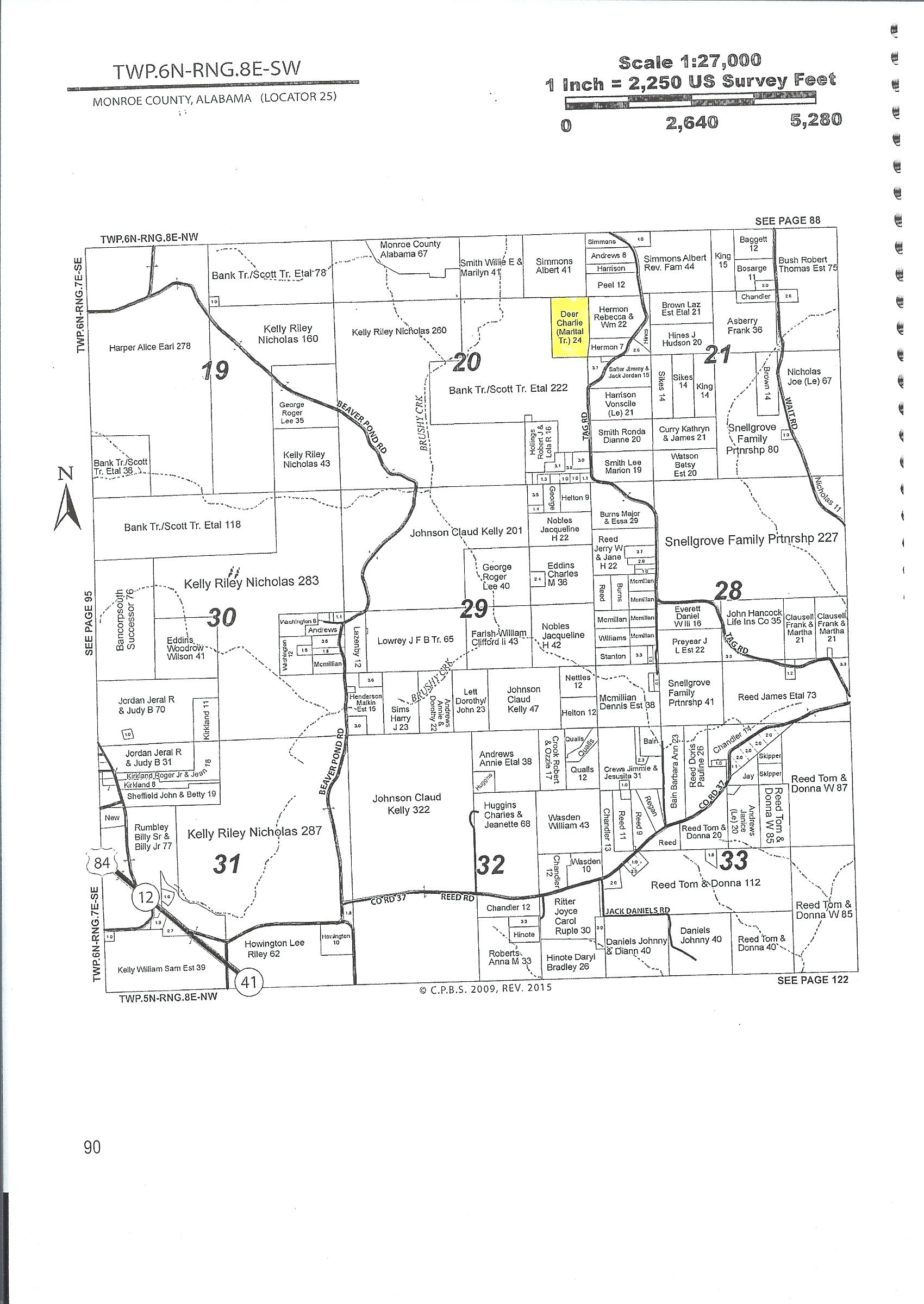 This tract has 22 acres (plus or minus) and is located about five miles east of Monroeville. It is south of Drewery Road and west of Tag Road. The timber is a mix of merchantable hardwood and pine and the topography is rolling. The hunting in this area is very good for deer and turkey. Access is by a logging road.