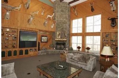 You?ve found the best! This lodge has approximately 8500 sq. ft. of exquisite living quarters that would exceed expectations. In addition to a downstairs open great room (with fireplace and big screen TV including surround sound), other amenities consist of a fully equipped kitchen? granite counter tops and professional quality stainless steel appliances?, dining area, wet bar, master bathroom, work area (with drive through roll-up door), storage areas, and mud room. The downstairs area also offers an ?owner?s private apartment? with 3 bedrooms, 2 bathrooms, full kitchen, and dining area, The upstairs recreation area has a large TV, foosball table, table air hockey, and weight lifting equipment. A full, double restroom is alongside the 5 bedrooms with the hallway leading to the outside patio overlooking the back yard, gazebo, cookers, and boat launch ramp.