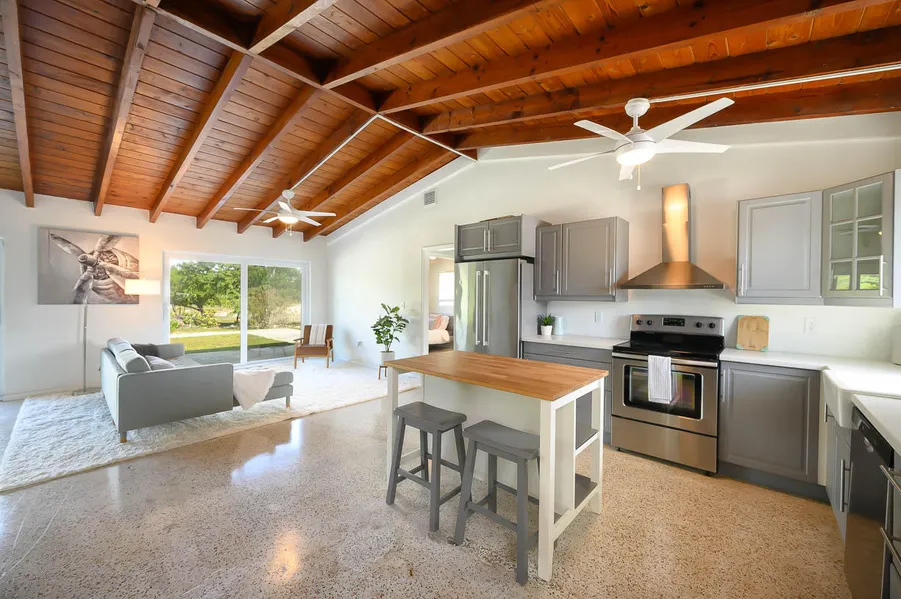 Rare find! 4BR/2BA cottage located directly on the Summerland Key Airstrip! This newly remodeled home is super charming and boasts an open floor plan featuring vaulted Dade County Pine ceilings, terrazzo floors, new Kitchen with stainless appliances, farmhouse sink, island and pantry. The split floor plan offers dual zone a/c, 3 Guest Bedrooms, new Guest Bathroom and a Master with new ensuite Bath. Storm ready with impact doors and windows and metal roof. Located next to the community park which offers lots of back yard privacy and easy access to the community boat ramp offering excellent ocean and back country access.