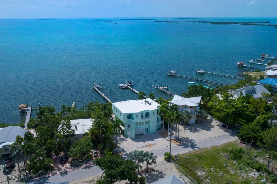Upon walking through the artist-designed custom copper front door it's obvious that the finishes and features of this property were done to a gold standard. The timeless and classic travertine marble floors throughout give the home's modern architecture a luxurious feel. The breathtaking views center on the coveted Florida Bay, and sweep 180 degrees to Key West. Setting a new benchmark for luxury in bayfront real estate, 31 North Bounty Lane showcases meticulous craftsmanship. The Neff-designed kitchen, while sophisticated and functional, is equipped with high-end Thermador appliances including an induction glass cooktop, double refrigerator, wine chiller, and double oven. Other features include a glass tile backsplash, exquisite green pebble granite, and a walk-in pantry.