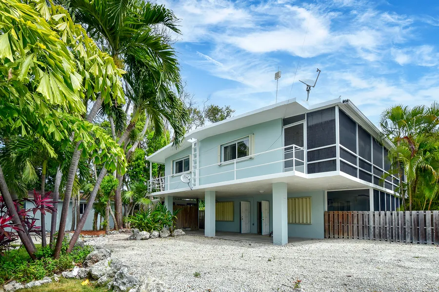 Rare opportunity for investors in sought-after Largo Sound Park. Walk 5 minutes to the oceanfront homeowner's park where you can launch a boat, sit on the beach or enjoy the outdoor pavilion. This two-story CBS home with a concrete roof sits on TWO LOTS. With over 2000 sq. ft. of living space, large or extended families can enjoy this great property with screened porches on both levels plus a two-bedroom, one bathroom upstairs, and a pre-firm two-bedroom, one bathroom downstairs with separate entrances. Add a summer kitchen and pool to this 10,250 sq. ft. lot fenced with mature landscaping. The cottage sits adjacent to the house and can be used as a cabana pool house or guest quarters. Renovate and make this large home a brand new custom home to suit your needs!