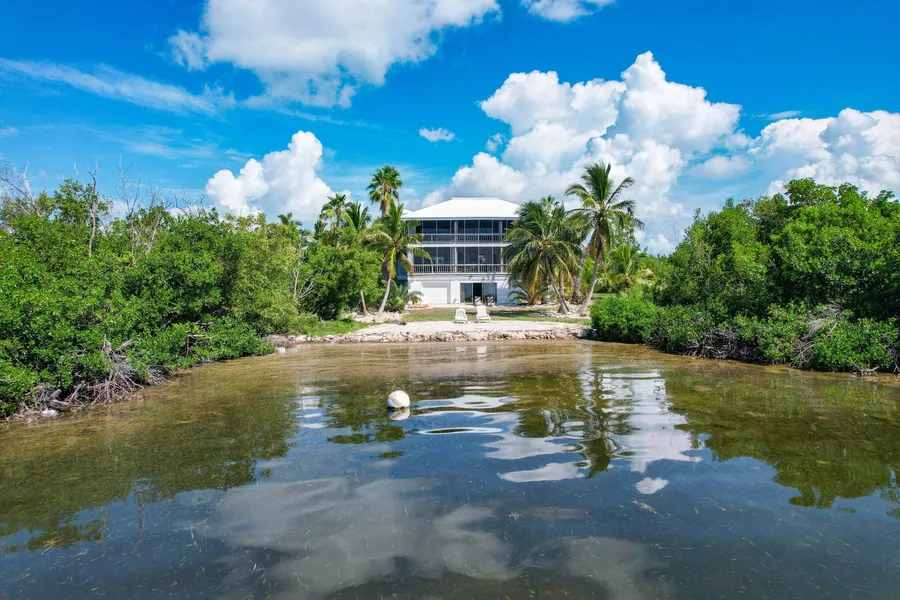 Sit on your Private Sandy Beach and enjoy the Forever Views at this Exceptional Oceanfront Home situated on the middle of 3 lots totaling over 65,000 sq. ft. including 1/3 of an acre of bay bottom for extreme Privacy! 4 Bedrooms, 2.5 Baths and a Bonus Room create a gated Private Retreat with over 2,700 Sq. Ft. of living space. Large Master Suite with Private Screened Balcony and Spa-like Bathroom featuring Walk-in Shower, Soaking Tub, and Double Vanity. Plus, 3 additional Bedrooms including a Full Jack and Jill Bathroom! 18ft Wood-planked Cathedral Ceilings, Elevator, Security System, Two Garages, Two Screened Balconies, and a Gated Drive are just some of the amenities awaiting you at this serene setting surrounded by swaying palm trees.