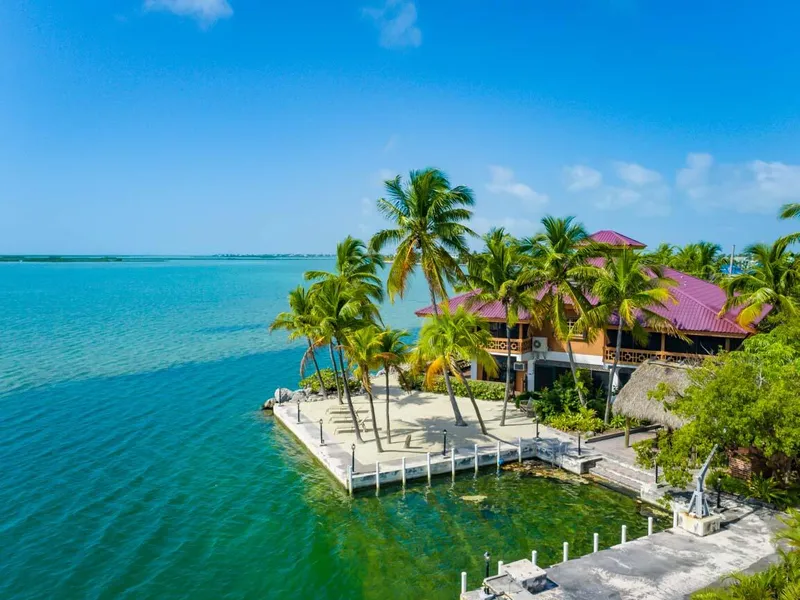 Gorgeous sunset views over Sugarloaf Sound from this Polynesian-inspired home. Immerse yourself in this tropically landscaped 17,500 sq. ft. point lot paradise. This 3 bedroom 3 bathroom plus loft home offers expansive water views from all angles and is accented by an open floor plan, soaring wood beam ceilings, and spacious bedrooms. Walls of glass and a large wrap around screened porch surround the Great Room, making indoor/outdoor living a breeze! After a day on the water, dock your boat at the concrete dock, complete with boat cut-in, and relax on the sandy waterfront beach or sip cocktails in the colossal covered screened lanai.