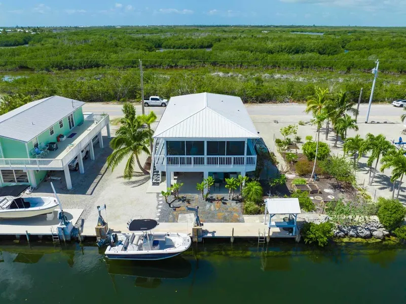Pristine Doctor's Arm dream getaway on an oversized 10,400 sq ft lot situated on a sparkling canal! This well-maintained beauty boasts plenty of natural light in the open and airy main living space, with access through impact sliding glass doors to a screened-in patio retreat, complete with relaxing Canal Views and balmy ocean breezes. The recently updated kitchen comes equipped for all culinary creations featuring ample storage, stainless steel appliances, a stylish tile backsplash, pantry, and custom epoxy countertops. Two spacious bedrooms and two full bathrooms provide plenty of room for relaxation. A generous laundry room provides loads of storage, fully customizable to your needs. Outside, a wrap-around porch takes full advantage of breathtaking Sunset Views, and the large downstairs enclosure provides room for storing tools and equipment. Tasteful stone pavers lead to a concrete dock with cleaning station and davits, ready for your next boating adventure. The expansive lot boasts an established garden equipped with automated irrigation, raised flower beds, and a myriad of tropical fruits and foliage. Enjoy an abundance of open and covered parking, as well as 30 amp RV hookup. Built to withstand all weather conditions, this home features impact windows throughout and metal roof. Additional upgrades include new A/C (2022) and new water heater (2022). Just a quick boat ride to enviable fishing and snorkeling, and a short drive to restaurants and stores in town. The ultimate Keys lifestyle awaits at this Big Pine Key paradise!