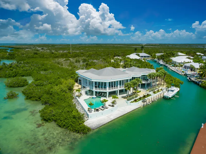 Exemplary Cudjoe Gardens Estate boasting a sizable 41,530 sq ft lot, surrounded by lush native landscape with resort-style amenities, and incomparable boating! Fully outfitted for the ultimate Keys lifestyle, this colossal masterpiece features a boat lift, private boat slip, davits, and nearly 150 ft of concrete dock space. This sprawling showpiece is nestled at the end of a substantial brick paver driveway and takes full advantage of its coastal location. The focal point of the open-concept main living space is a wall of large picture windows, flooding the space with natural light and stunning Open Water Views. The space lends itself to entertaining with an oversized dining room, and well-appointed Chefs kitchen, complete with granite countertops, stainless steel appliances, ample storage, large kitchen island, and wet bar with counter seating. An additional bonus room, utilized as a ga...
