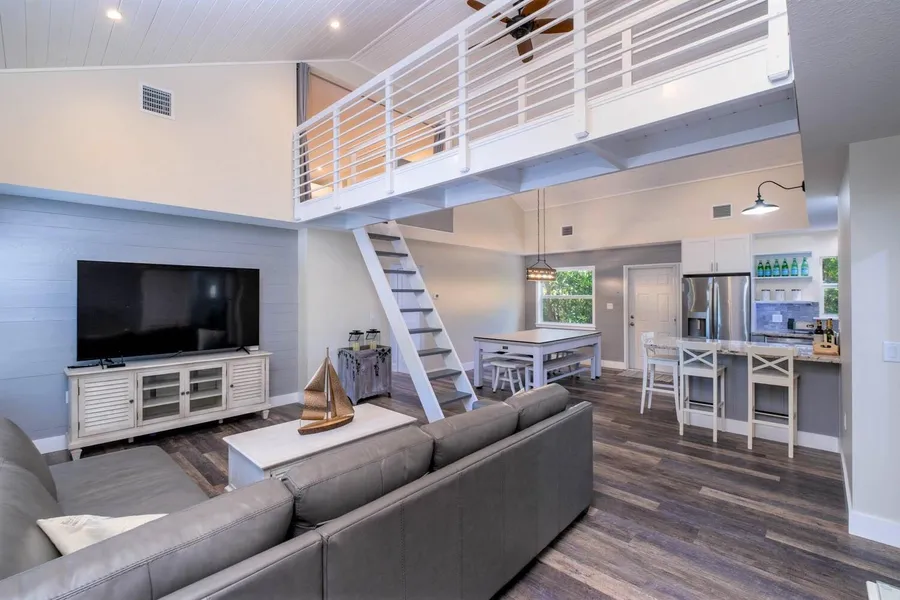 This like new, custom built CBS home is the perfect Keys retreat! Full time resident, weekender or seasonal, this could be the one you are looking for! Low maintenance and energy efficient, this single level home was built to 185 MPH windload standards and features impact windows and doors, metal roof, a split bedroom plan and LED lighting throughout. Enter the front door and you'll feel the welcoming peacefulness of the open living area with shiplap accent walls, tongue and groove ceiling and lifeproof floors. This 3 bedroom 2 bath home has a split bedroom plan plus 2 finished lofts that are accessed by a ships ladder. The GE kitchen appliances are stainless steel with a propane stovetop with 4 burners, griddle and oven. The microwave/convection oven has the exhaust fan ducted to the outside and there is remote control under cabinet lighting. This home is very energy efficient with a du...