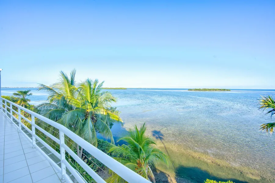 Perched on the oceanfront, this extraordinary Cudjoe Key estate boasts breathtaking views from every vantage point, including the rooftop deck. The solid concrete construction, complete with impact-resistant doors and windows, concrete dock, and poolside cabana featuring a bar, sink, and ice machine, ensures a luxurious haven. Lush landscaping, meticulously maintained on a weekly basis, adds to the property's allure. Upon entering the coded-entry home, a stunning living, dining, and kitchen area unfolds, complete with quartz countertops, stainless steel appliances, and a convenient laundry room. The kitchen's center island is spacious and includes refrigerator and freezer drawers, a cooktop and barstools, making it a great entertaining area. The main level's ensuite bedroom, featuring double beds and a jack-and-jill bathroom, offers direct access to the oceanfront patio and a spiral stai...