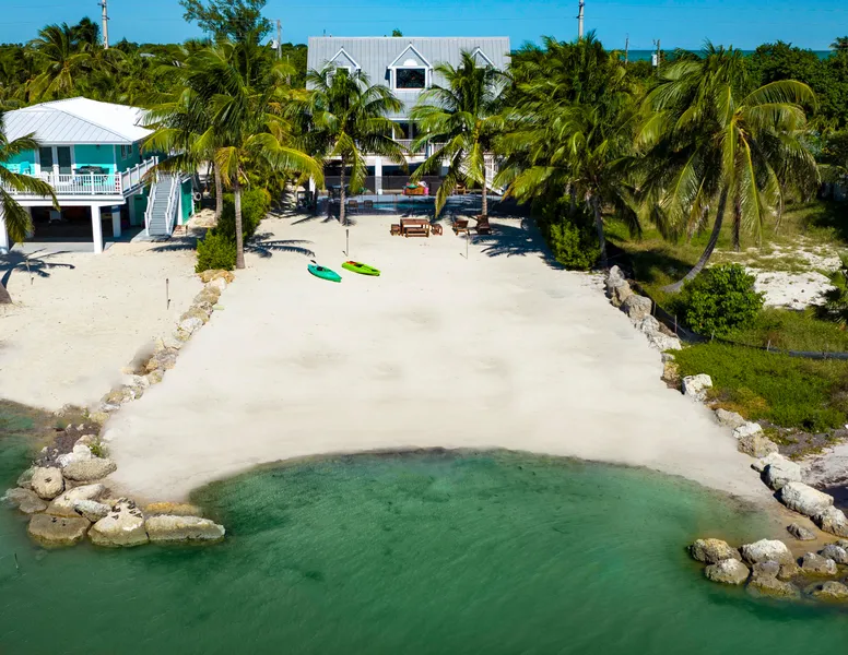 Welcome to Casa de la Playa in beautiful Grassy Key! Nestled on over half an acre, down a winding, manicured driveway enveloped in lush tropical landscaping, this spectacular property encompasses an elevated island lifestyle. Boasting a private sandy beach and endless Open Water Views, this fantastic Florida Keys paradise would make an excellent forever home, or income-producing investment property. Inside, the sprawling interior is bright and welcoming and features 4 generous bedrooms and 4 bathrooms, providing ample space for comfortably hosting family and guests. The open-concept main living area lends itself to entertaining with a spacious great room flowing into a well-appointed kitchen, complete with stainless steel appliances, abundant storage, and large kitchen island with seating. An expansive veranda on the second level offers spectacular views of the sparkling pool, beach, and...
