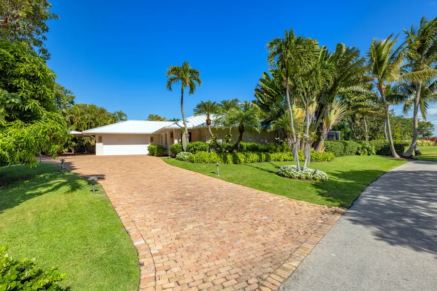 As you approach this all-on-one level home you will understand the uniqueness of this location situated at the end of the street overlooking the 17th fairway of the Dolphin Course. The privacy is unmatched, tucked away with long fairway views. Enjoy sitting outside in a tropical paradise among coconut palms, a key lime tree, banana stands, mango and avocado trees. The landscaping offers Zoysia grass, keystone walkways with river rocks, along with stunning landscape lighting. This three bedroom and three bath home has been tastefully renovated offering stone floors throughout, custom cabinetry, Taj Mahal quarzite in all baths, crown molding, impact windows and doors, raised seam white metal roof, a Generac whole house fully automatic generator with 1000 gallon propane tank and gas tankless water heater. The kitchen is a chef's dream come true with a Viking dual fuel range, Subzero refrige...