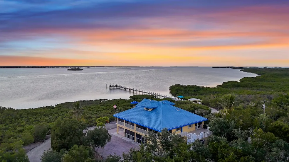 Tucked away on Big Torch Key, one of the Florida Keys' best-kept secrets, this rare 3 acre luxurious custom estate offers the ultimate in privacy, tranquility and breathtaking waterfront views.With 357 feet of pristine shoreline on the Niles Channel and 180 views, this west-facing retreat is perfectly positioned for year-round sunset vistas. The design seamlessly connects over 4000 ft. of indoor and outdoor living, offering 2100 ft. of air-conditioned, light-filled interior and 2000 ft. of covered wrap-around screened-in porches. The elevated classically styled ''Key West Sea Captain'' architecture maximizes the view, allowing for ocean breezes and panoramas from nearly every room.The mid-century modern interior features an open concept design with floor-ceiling pocket slider doors to bring the outdoors in. The third floor master suite is a private sanctuary with a TV lounge, desk area,...